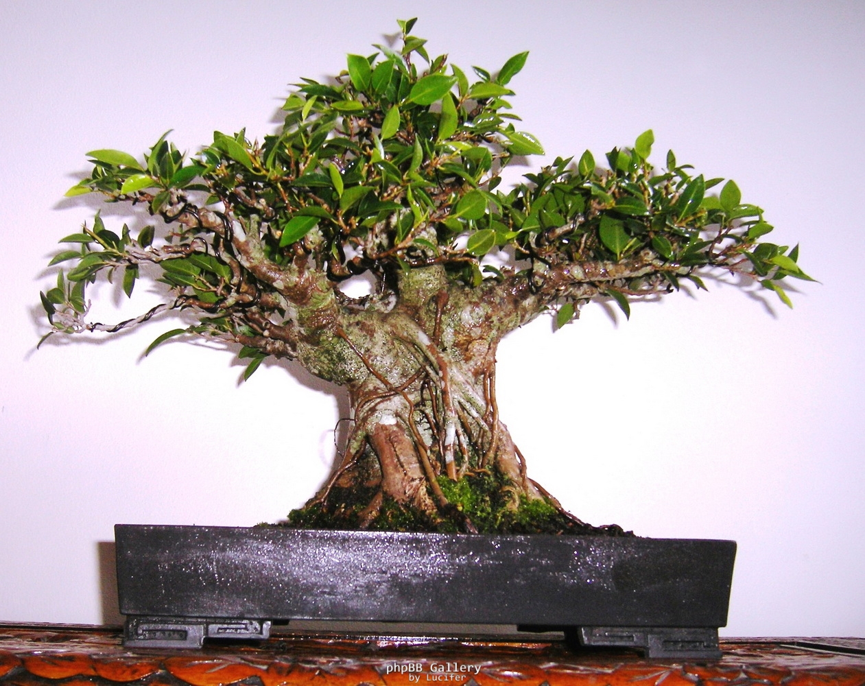 After I purchased it I planted it in a large container and let it grow for a few years, firstly to thicken the trunk, secondly to rejuvenate the root system and lastly to encourage horizontal growth. The tree is very hardy in our climate and can cope with weeks of rain and weeks of drought. I place it under light shade cloth in the hot summer months and remove the shade cloth during the cooler months. Exposure to full sun helps maintain small leaves and short internodes, but regular trimming is also as important.