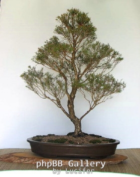 Lynette wrote:I don't have much information on this tree, as I wasn't sure about it when I first got it. I think its about 5- 6 years old and I bought it in a local nursery. I have now grown quite fond of it. I trimed it a few weeks back hoping for more red of new leaves, but it has rained here for 3 weeks and not much growth has happened. I put it in this pot about 12 months ago and it is almost root bound already. The only problem with Melaleucas are they grow so fast and I have some insect that likes to chew on them and can leave a plant defoliated over night. This happened to this tree about 8-9 months ago and I thought I would lose it, but it has recovered nicely.