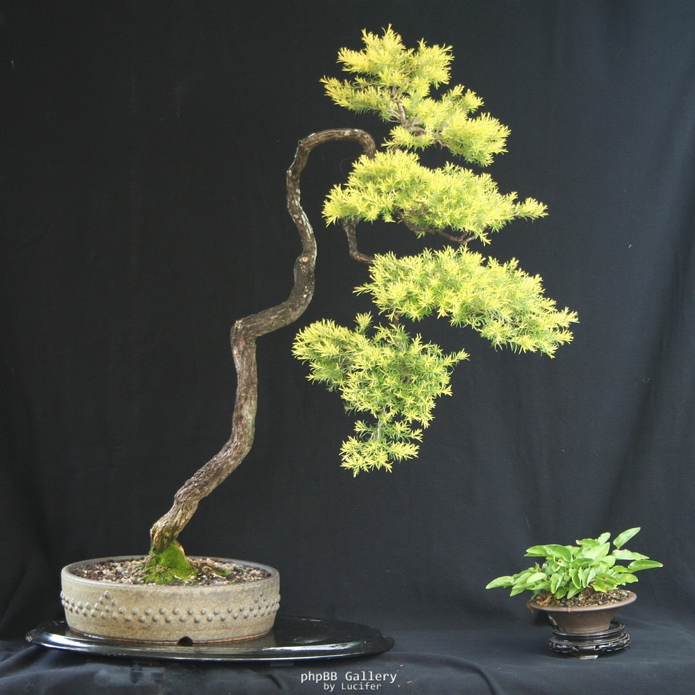 Purchased as a thin sapling in a literati feel with the almost soil-less rootball sitting in a pot far too large. How it survived is unimaginable. Since then it has been worked in several positions until two years ago it was situated in this upright position and heavy styling commenced. The tree has flourished.